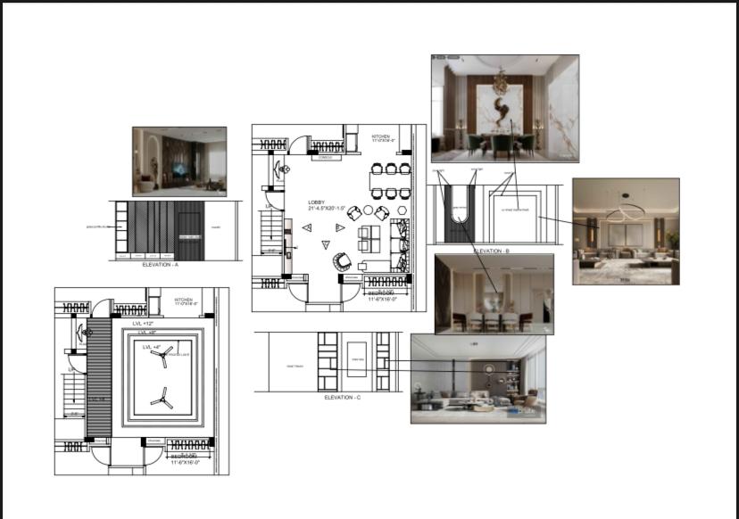 📌 Sample designs from your plans: open double height view, lobby visuals, elevation styles.