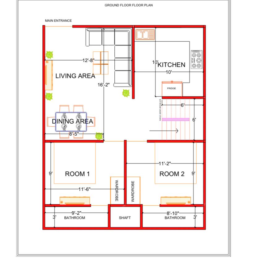 📌 Example: Modular kitchen planning, furniture layout, false ceiling zoning, etc.